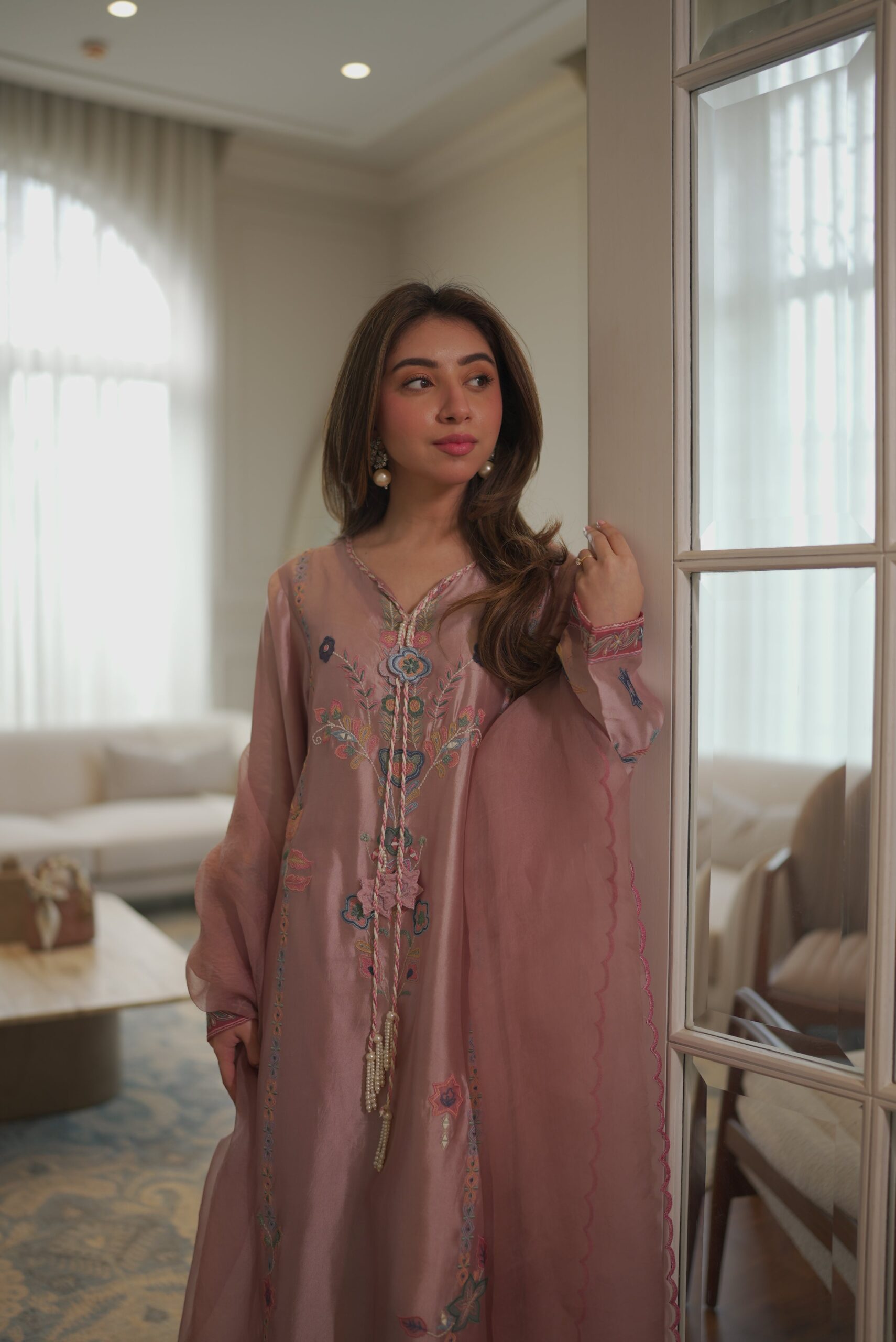 Chai Pink Embroidered Kurta With Palazzo Set