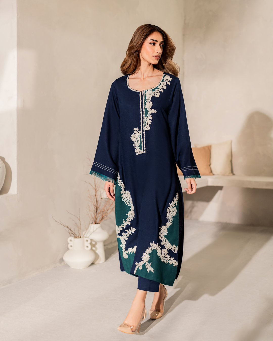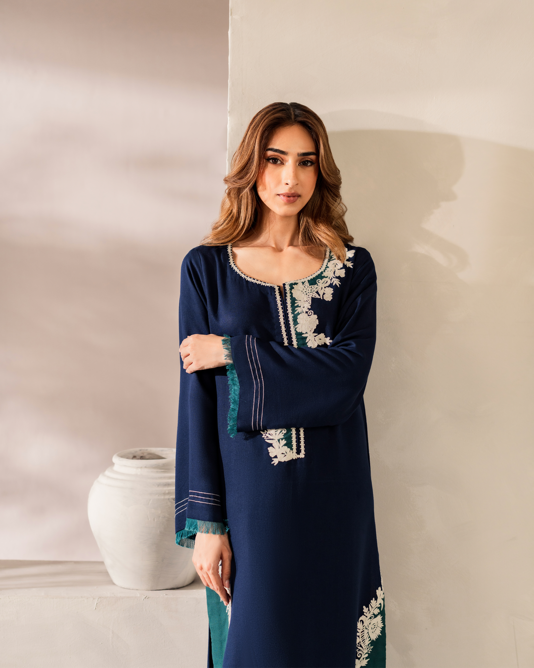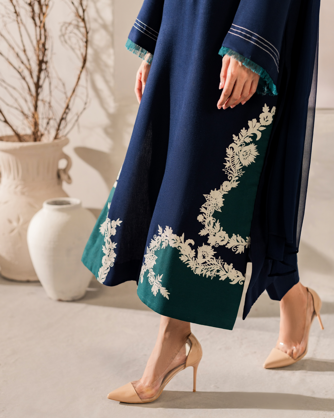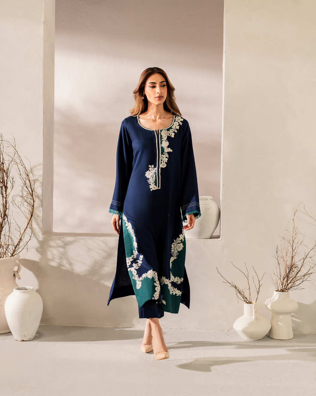 - Diane is a splendid combo of Blue and Green, with intricate ivory embroidery on our Signature cottonfabric.
