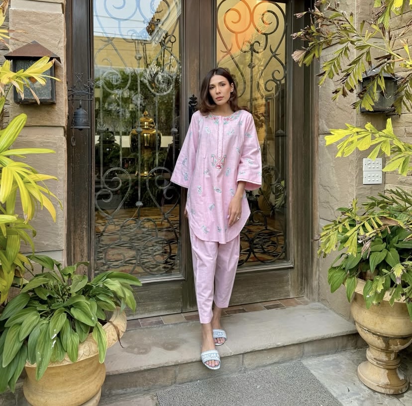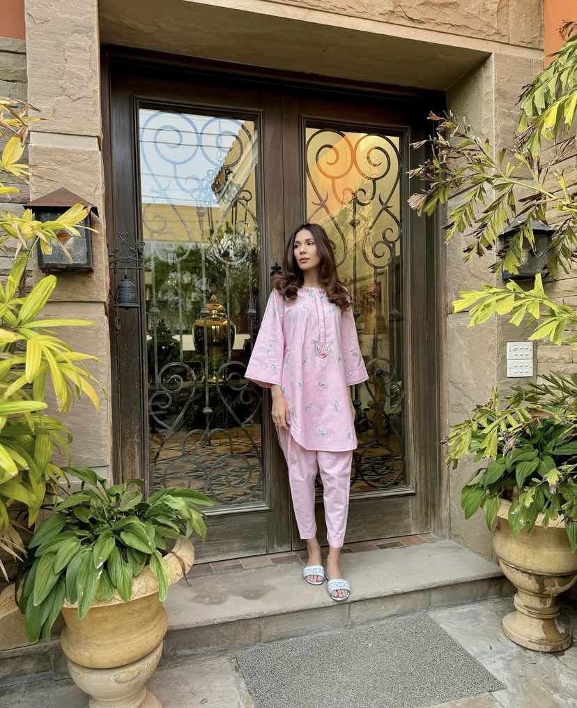 Elegant and modern, this pastel cotton ensemble features intricate embroidery and Paired with pant.