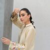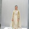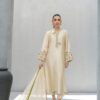 Embrace island elegance with our pearl-colored long shirt, adorned with stunning handworked tropical palm trees delicately gracing the neckline, and playful animal motifs adorning the sleeves. Crafted from luxurious pure sheesha silk fabric for both the shirt and pants, and complemented by a pure sheesha organza dupatta featuring delicate embroidery throughout, this ensemble exudes sophistication and charm. The long shirt, paired with narrow tailored cut pants, offers a contemporary silhouette, making it a perfect choice for those seeking effortless style and timeless beauty