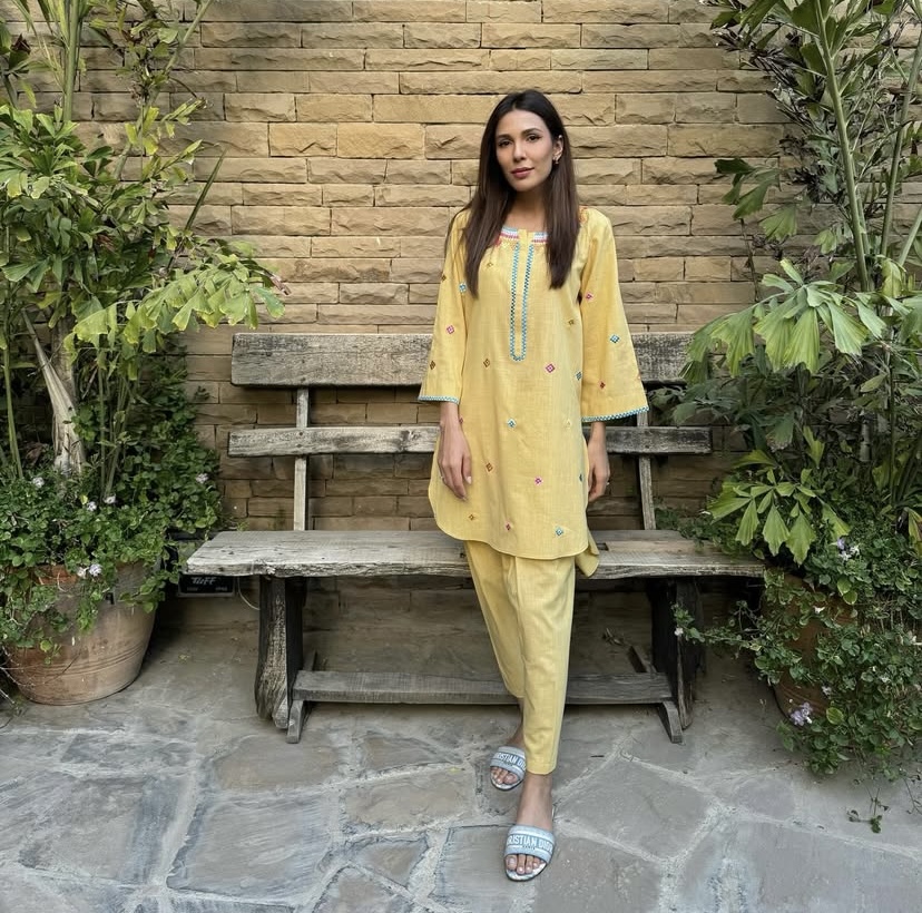 Elegant and modern, this raw yellow color ensemble features intricate embroidery and Paired with pant.